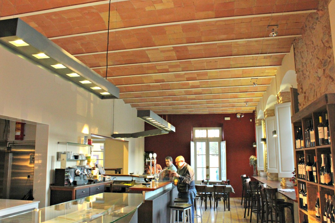 The restaurant stands in a corner, and has two different parts. The old house, whose partition walls were demolished, is a takeaway restaurant and bar. This is the most charming area due to the preservation of the old elements: the floor –hydraulic mosaic- was polished; the vaulted ceiling was restored to show the original brick, which had been painted; and the stone of the outside walls was restored to its original stone.